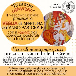 Venerdì 16 settembre alle ore 21:00 in Cattedrale si terrà la veglia di inizio anno pastorale insieme al Vescovo Daniele che conferirà il mandato agli operatori pastorali, tra cui anche ai catechisti.