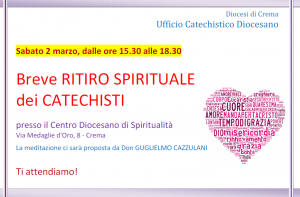 Vi aspettiamo sabato 2 marzo alle ore 15:30 presso il Centro di Spiritualità in via Medaglie d’Oro 8 a Crema.